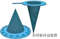 為了提高過濾器的精度,可在錐形臨時過濾器的錐形濾板上安裝金屬絲網(wǎng)來提高過濾精度,而錐形濾板只是作為支撐。